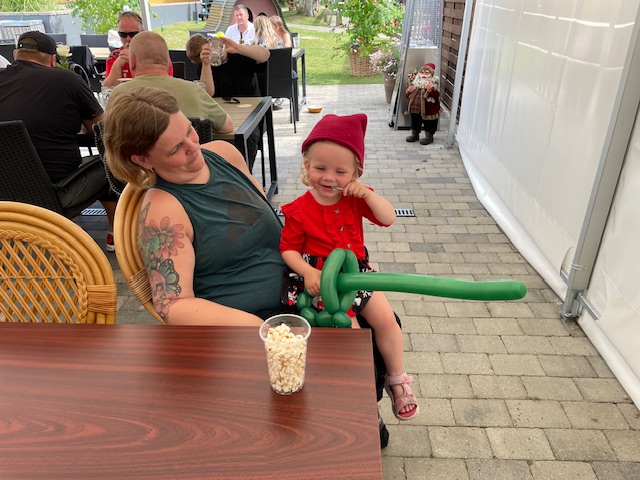Her deler de slik ud til alle de søde børn på campingpladsen.
